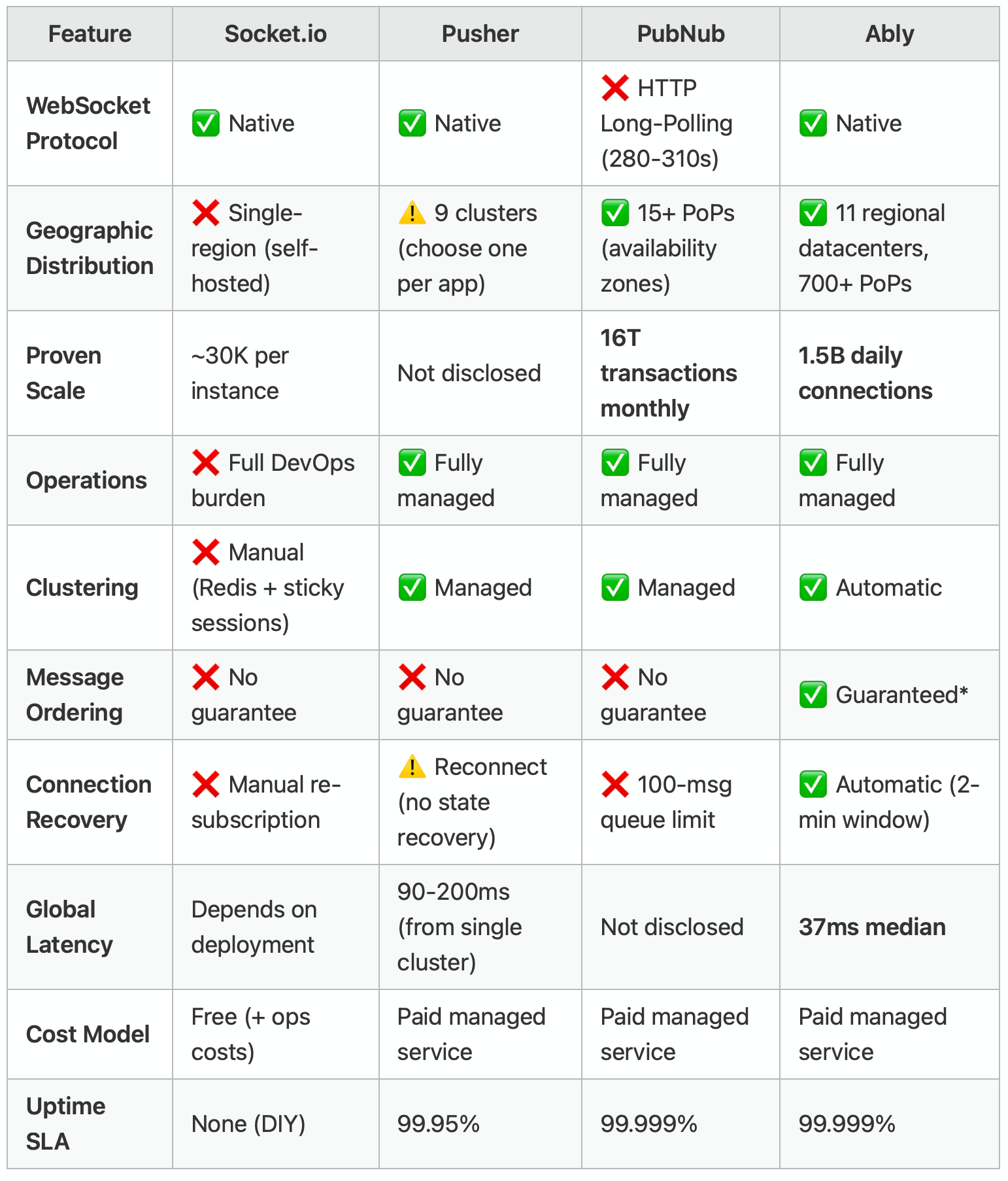 PubNub demonstrated global distribution with 15+ points of presence (exact locations not publicly specified). But here’s where it gets interesting.